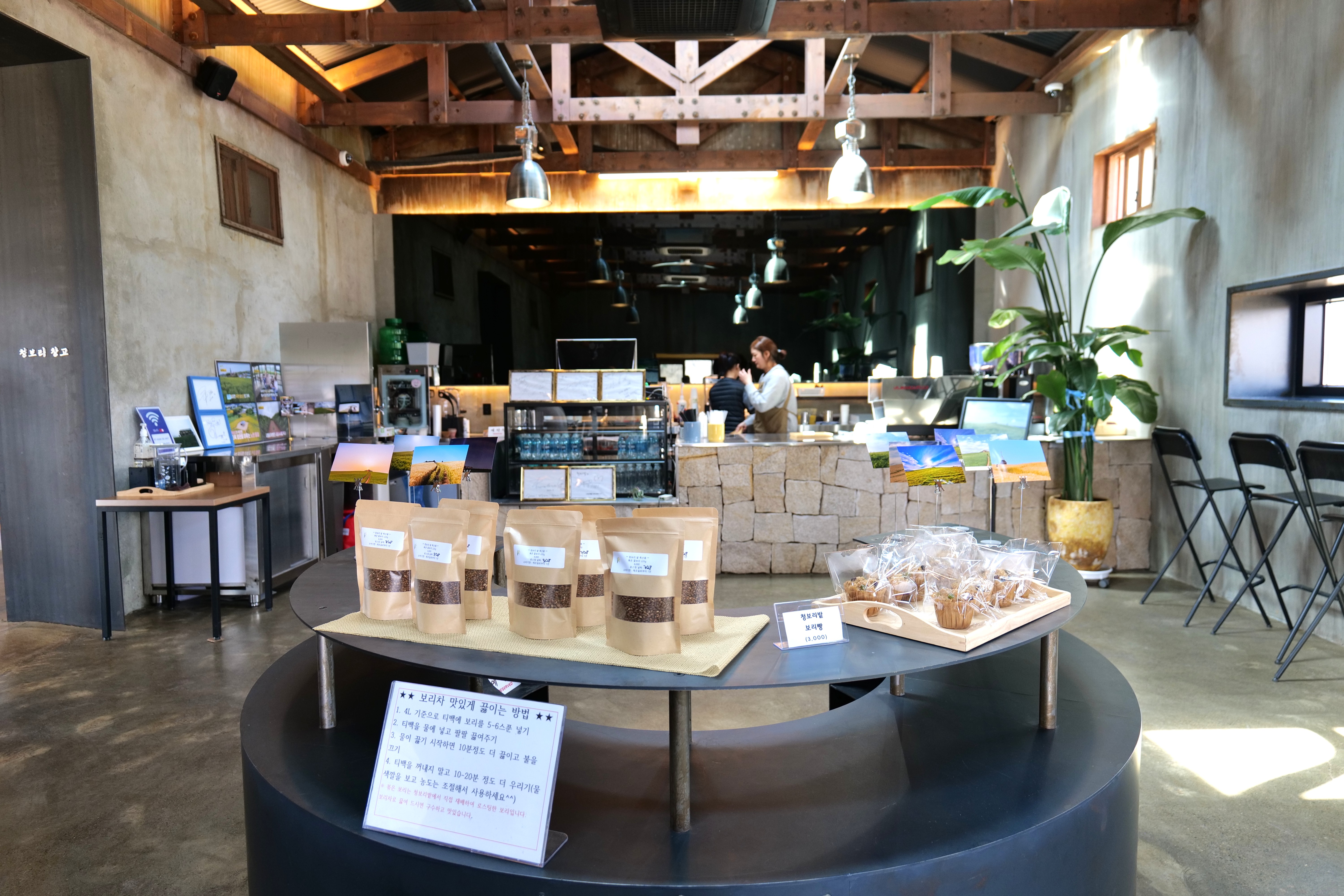 어떤 지도를 보면 이곳을 폐목장으로 표시한 곳이 있는 것으로 보아 과거 이곳은 목장이었고, 카페는 관리용 창고였는데 세월이 바뀌면서 목장을 보리밭으로, 창고는 카페로 리모델링 했나 봅니다.
