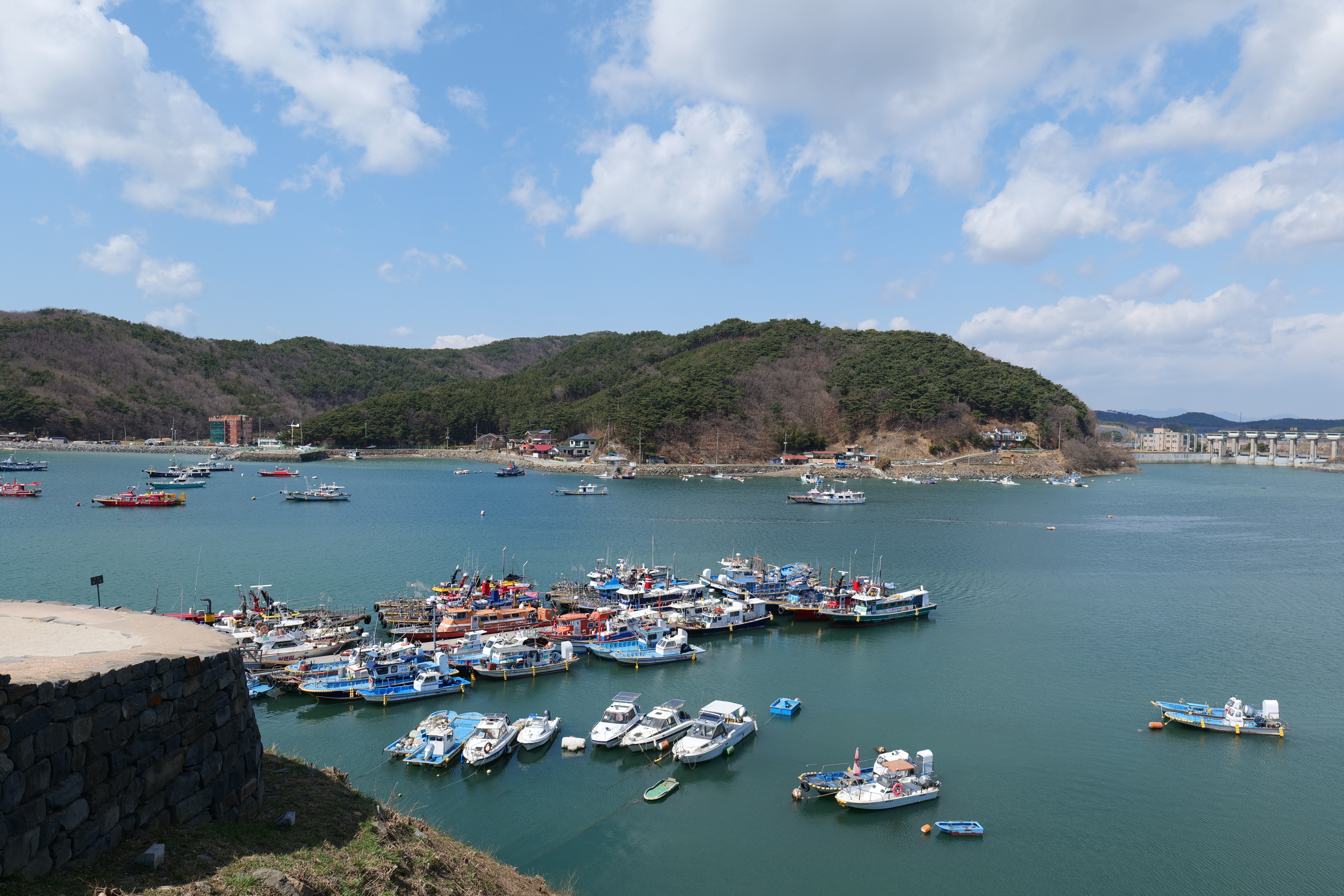 오천면소재지는 이 강이 흘러드는 만 깊숙이 들어온 바다에 여러 배들이 떠 있는 모습이 참 인상적이고 평온해 보입니다.