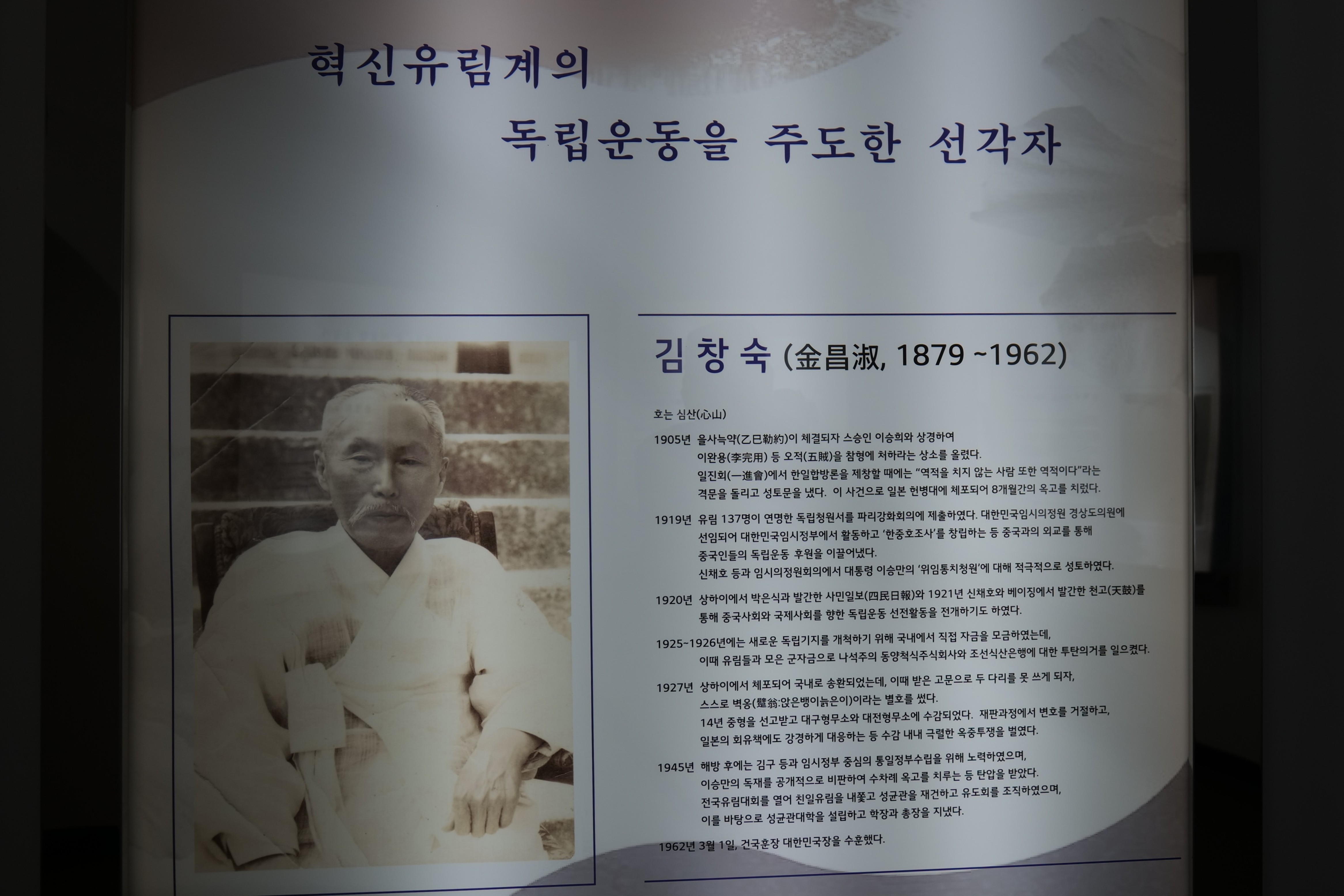 ○ 1909년 유림 137명이 연명한 독립청원서를 파리강화회의에 제출하였다. 대한민국임시의정원 경상도의원에 선임되어 대한민국임시정부에서 활동하고 '한중호조사'를 창립하는 등 중국과의 외교를 통해 중국인들도 의 독립운동 후원을 이끌어냈다.