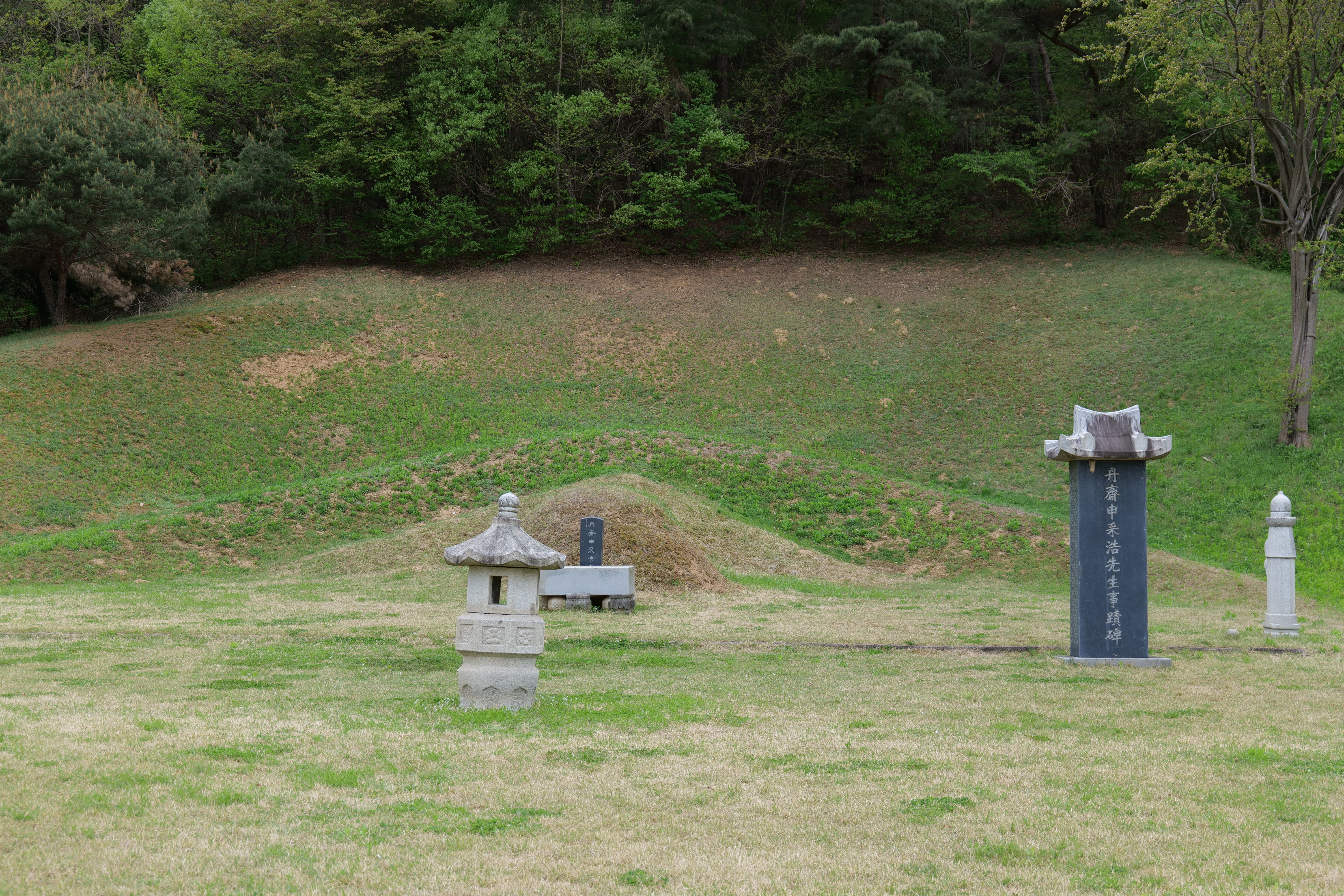 묘소는 선생이 어린 시절에 살던 옛 집처인 이곳에 단장하였다. 묘비는 한용운, 오세창이 만든 것을 신백우가 세웠으며, 1972년에 세운 사적비가 있다.