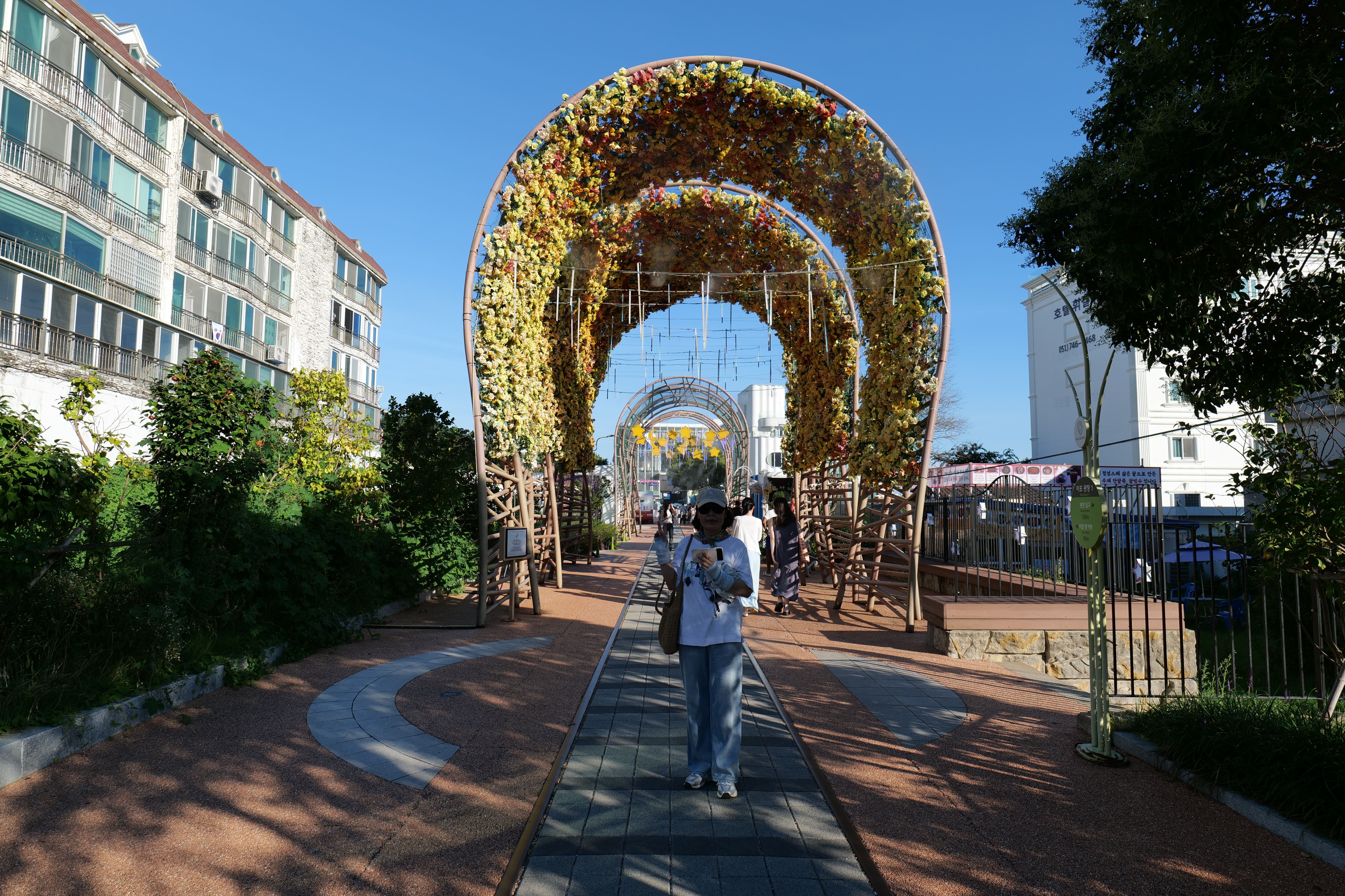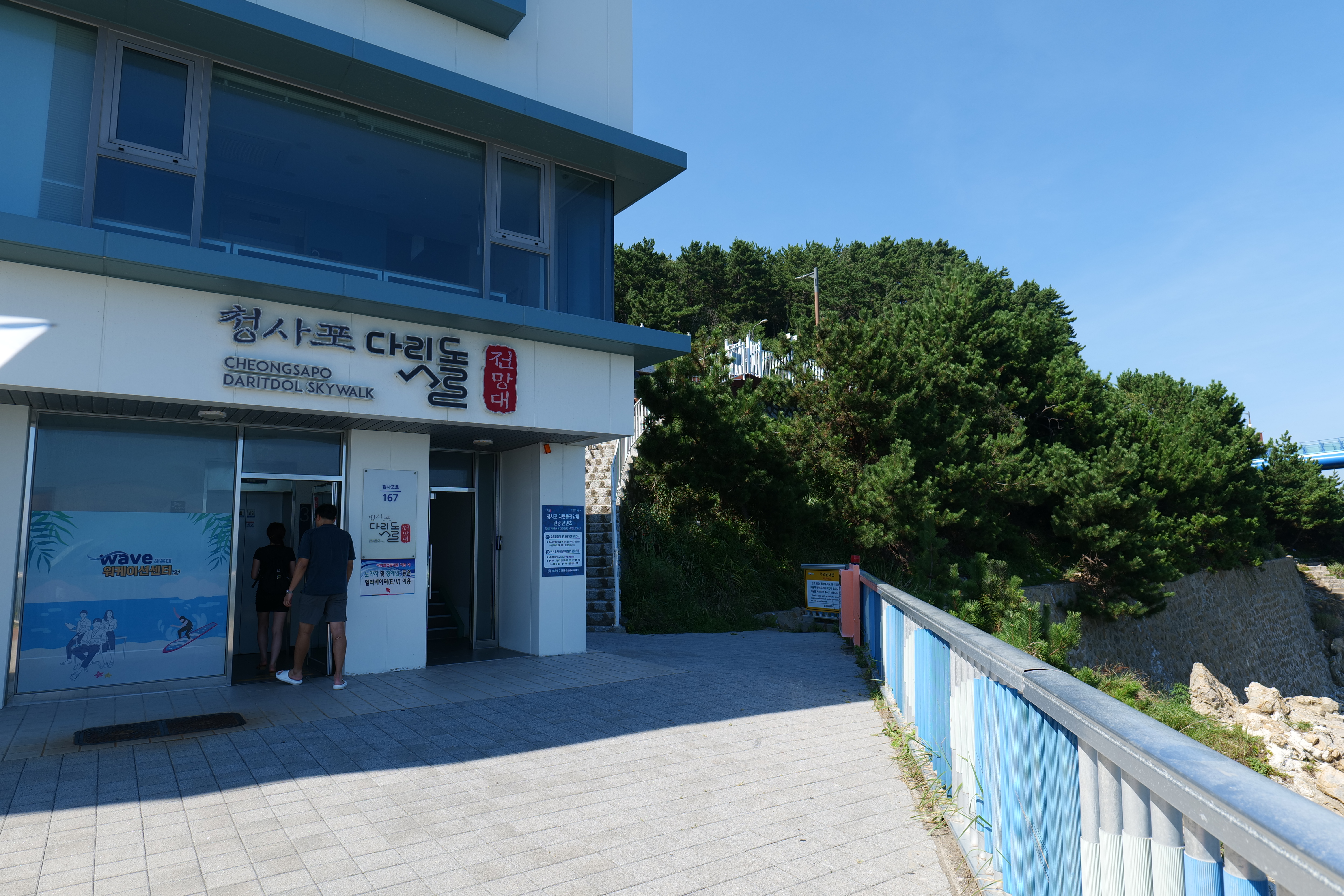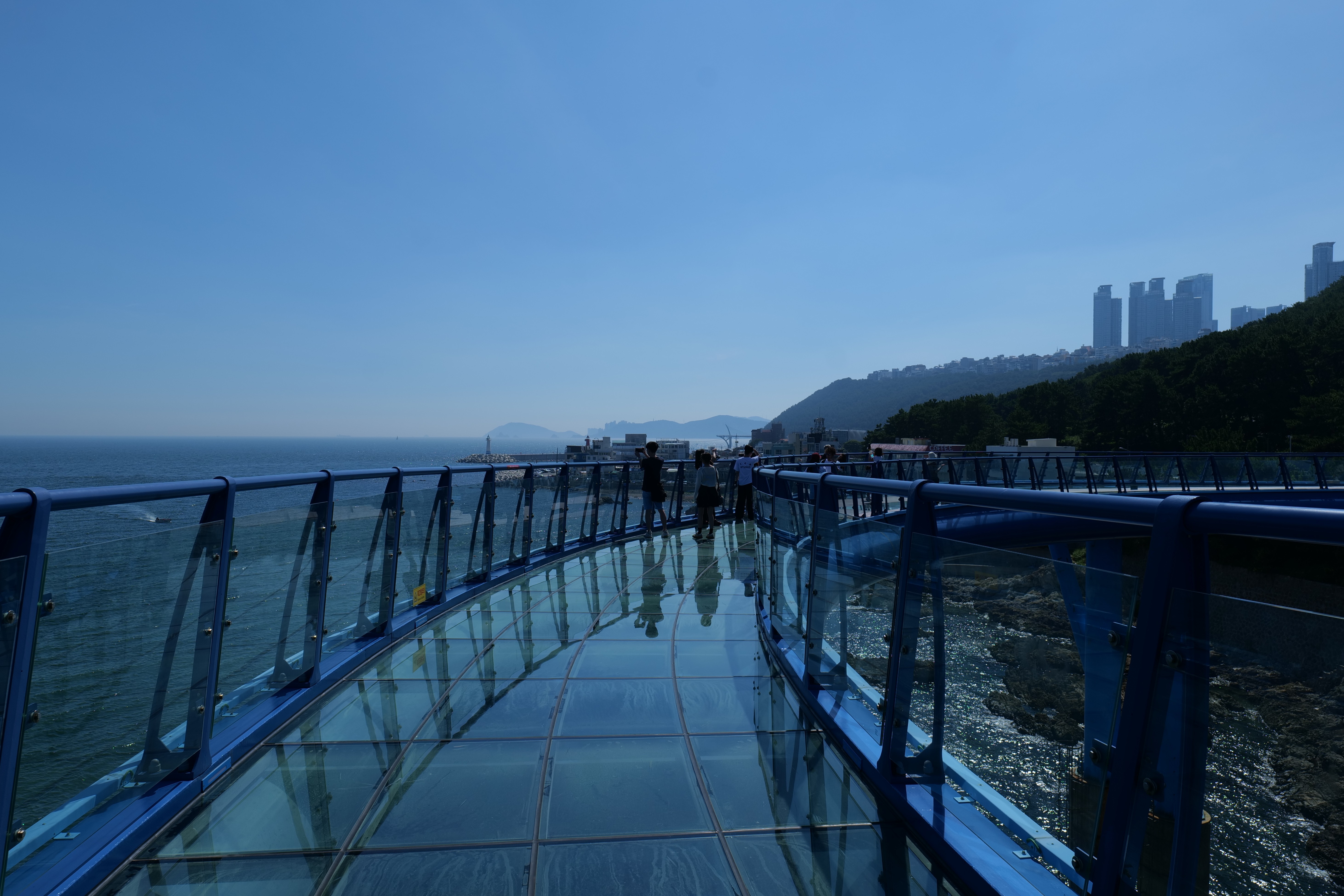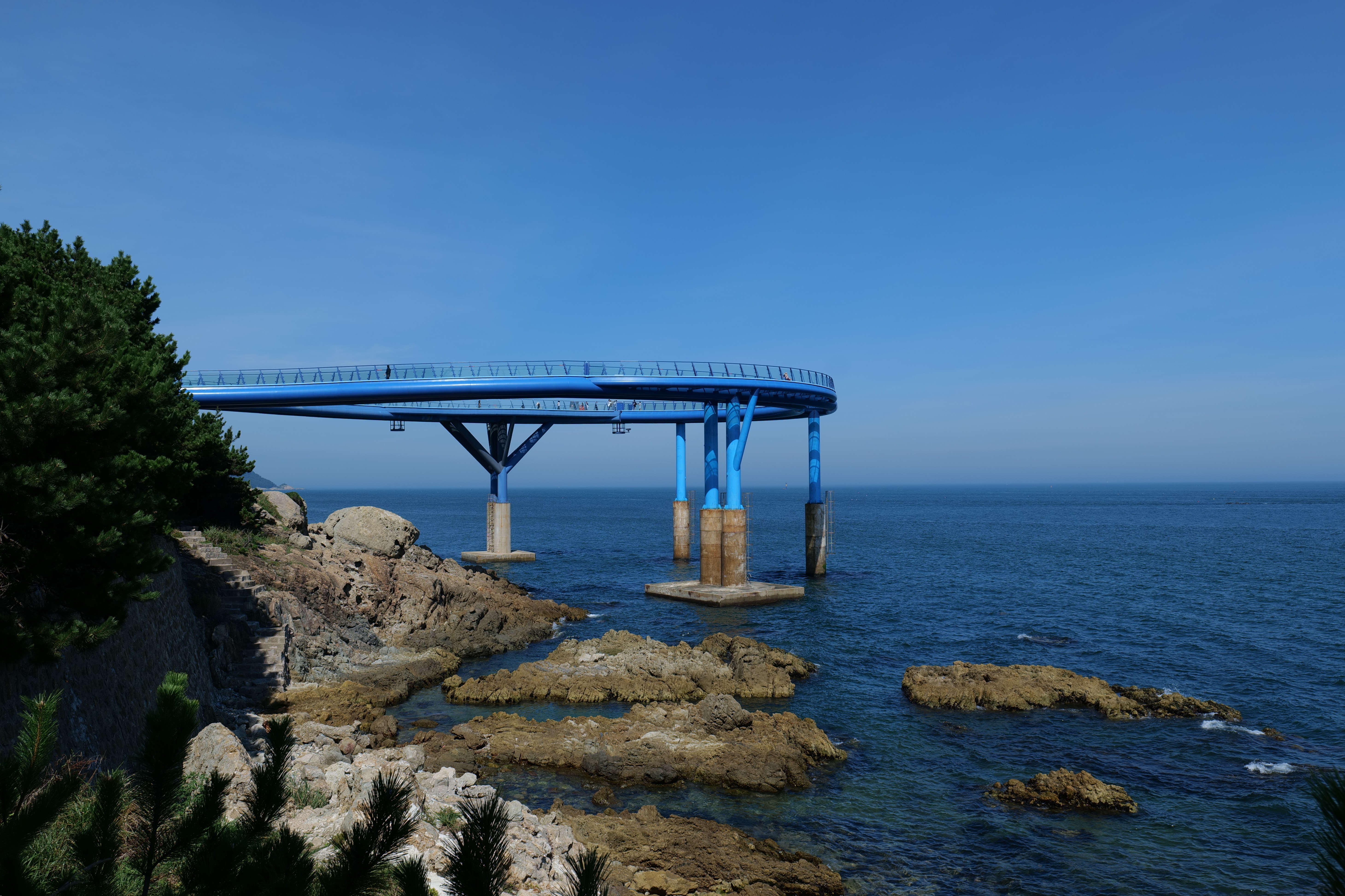 철길을 따라서는 해변열차가, 보이는 구조물로는 스카이 캡슐이 다니고 있고, 철길 옆으로 산책로가 조성되어 있습니다.