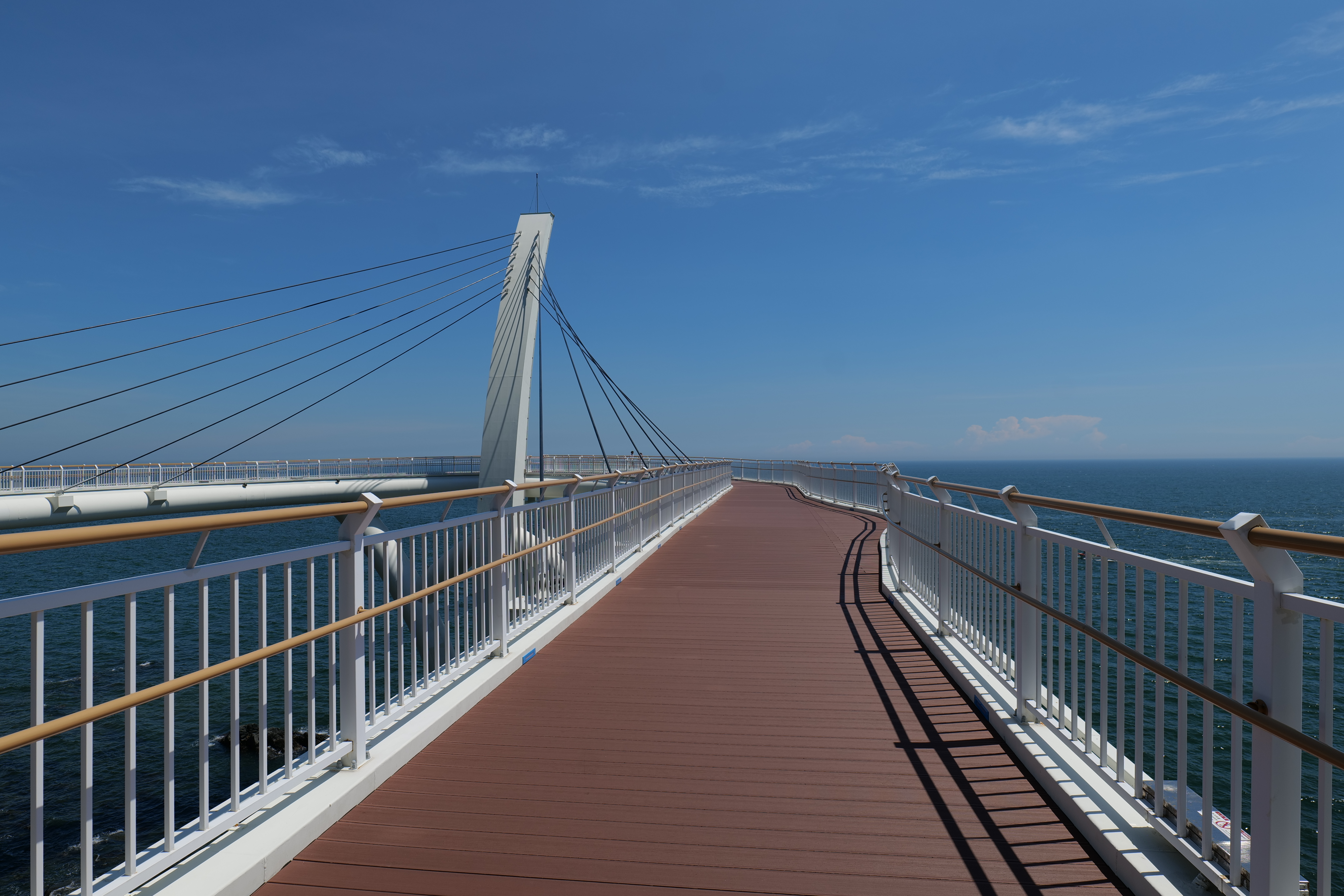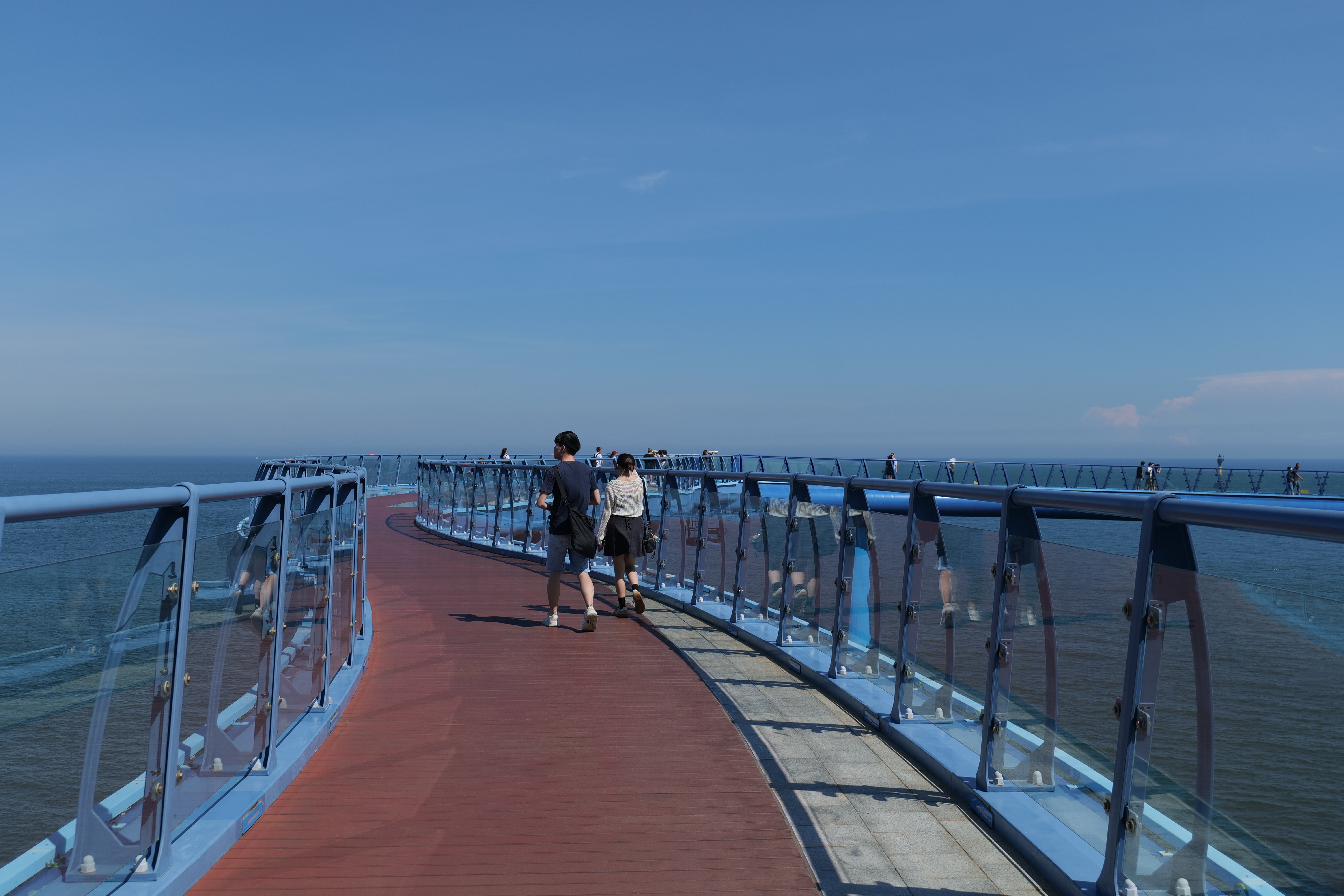 총 길이 137m, 폭 3~5m, 높이 22m(해상)이며, U자ㅇ형 통로, 초승달 모양의 주탑, 직경 15m원형 LED조명이 특징이라 합니다.