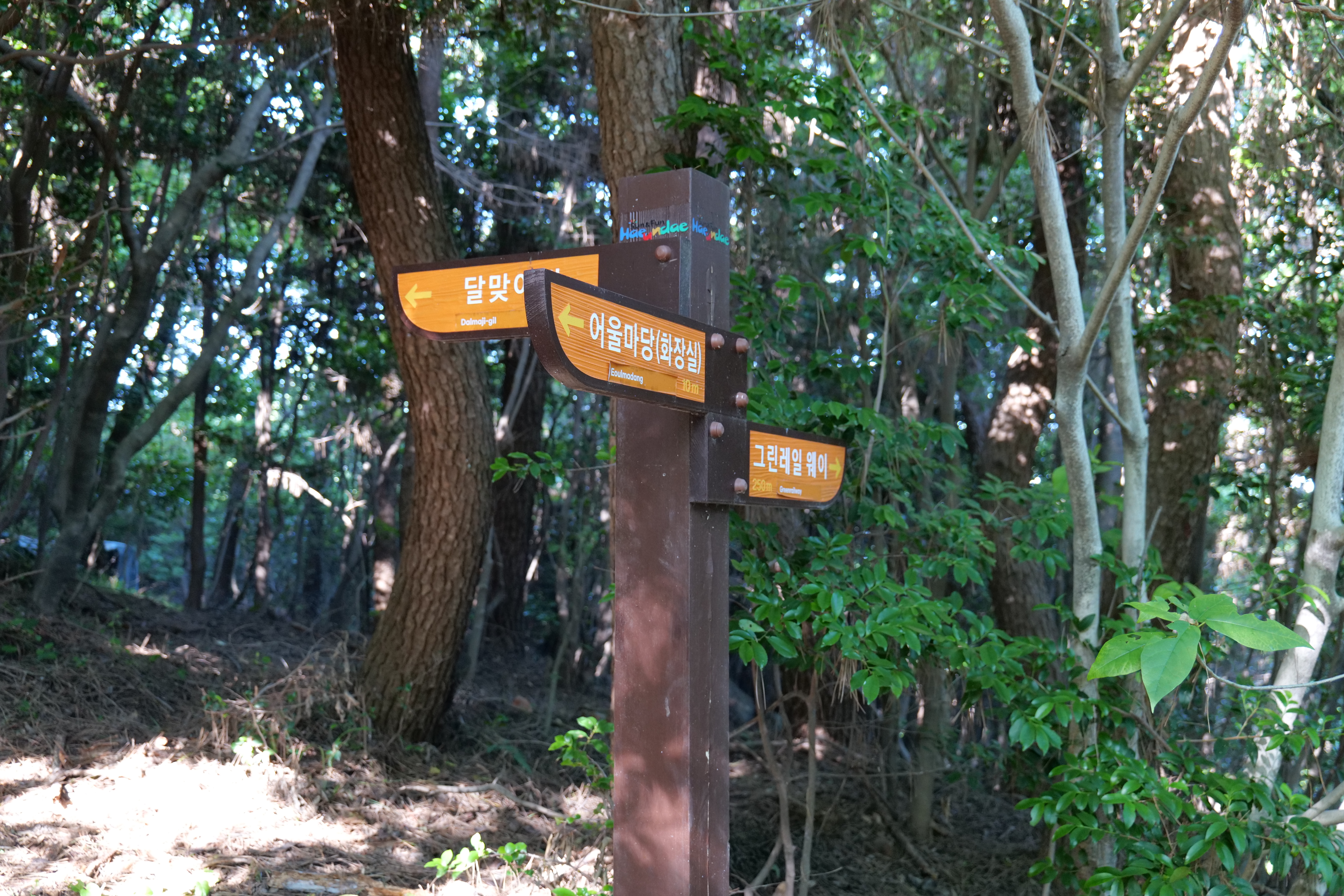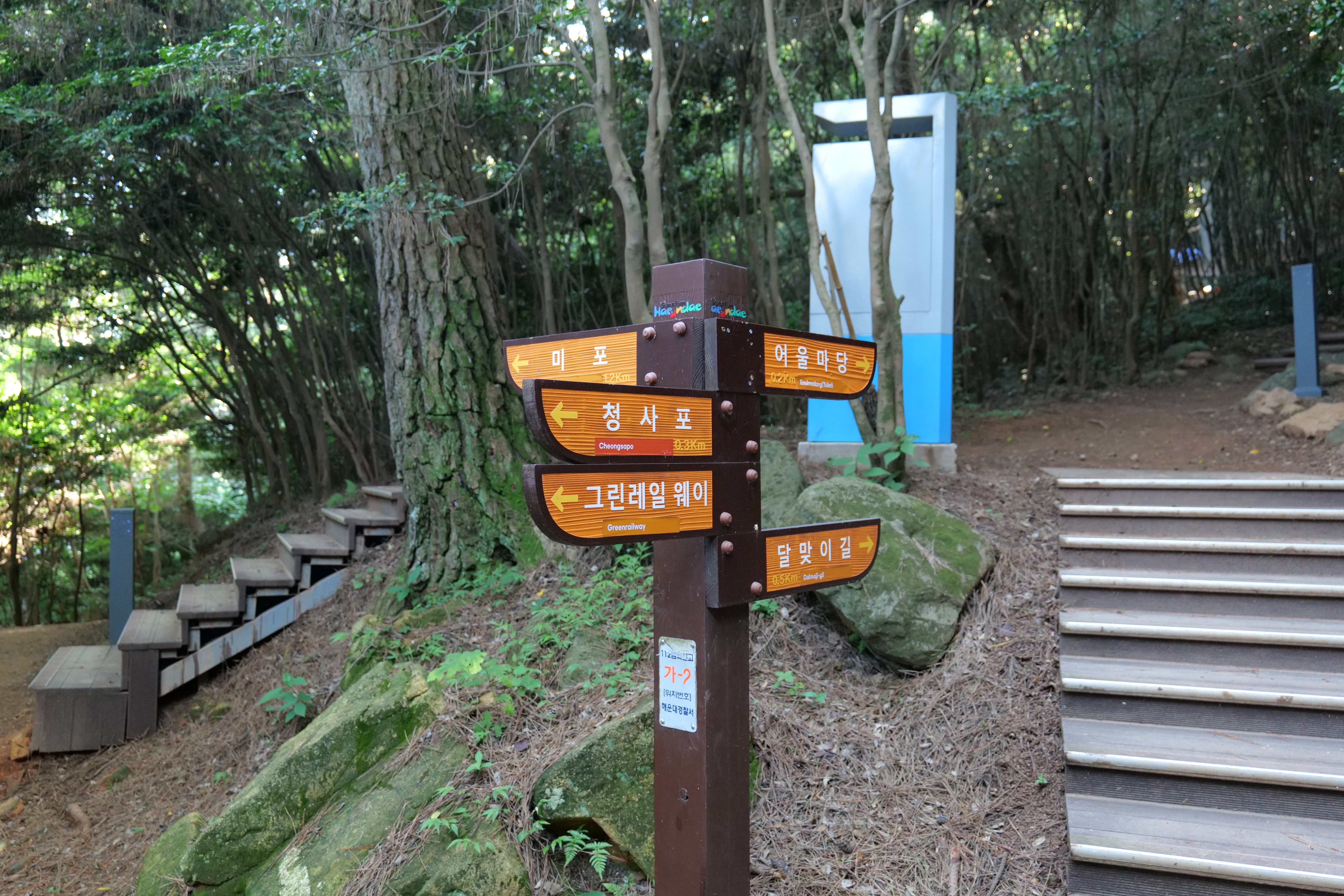 순환샌책로(갈맷길 1-2)는 문탠로드 입구에서 바다전망대, 어울마당, 해월정을 거쳐 다시 문탠로드 입구로 돌아오는 2.2kn 원점회귀형 코스인데, 어울마당 갈림길에서 2020년 개통된 그린레일웨이와 견결되는 코스를 이용해도 좋다,