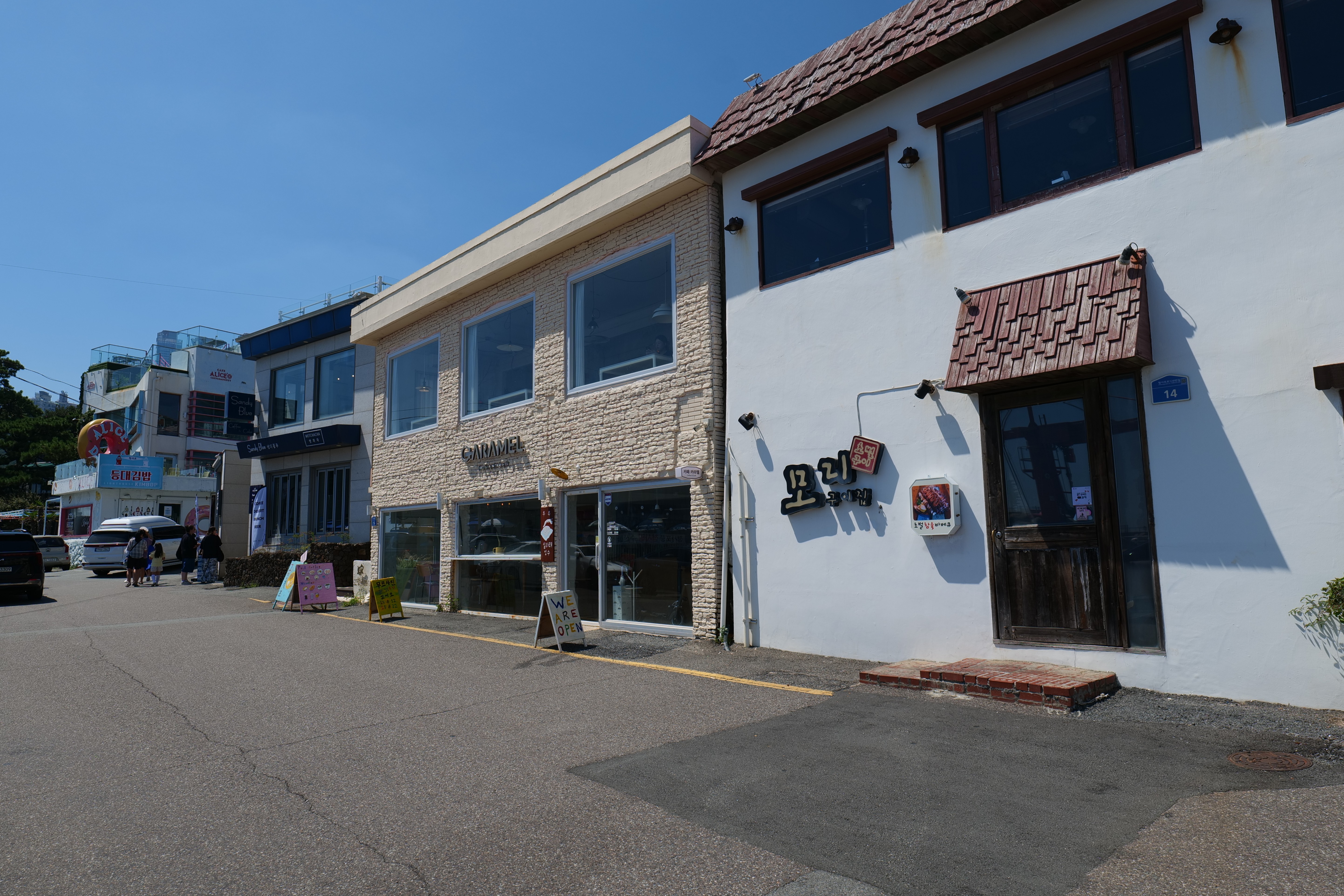 바닷가를 따라 식당, 카페들이 줄지어 있는 끝집으로 오면 다릿돌 전망대로 가는 길로 오를 수 있습니다.