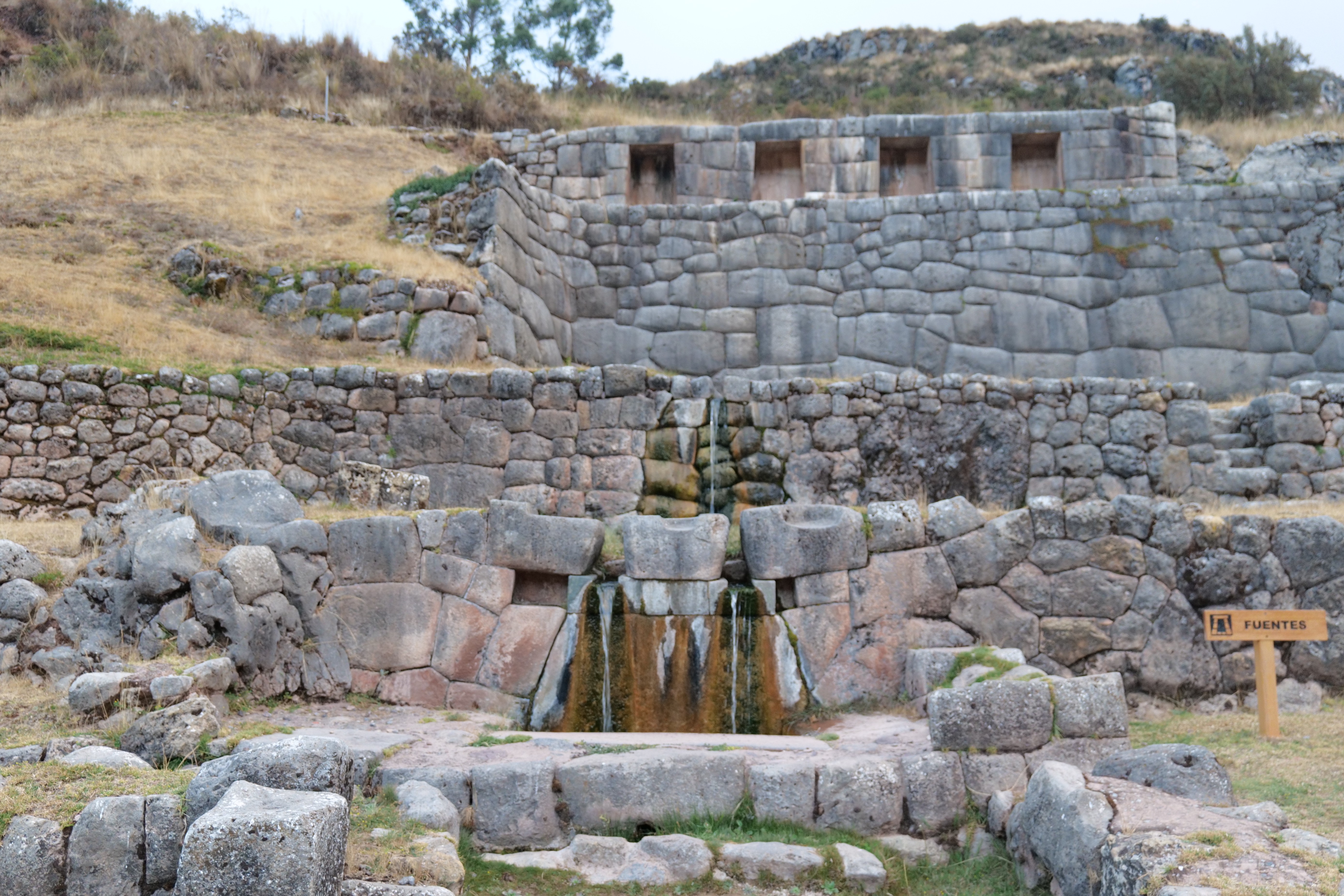 이 복합 단지는 15세기에 특히 사파인카 파차쿠티와 그의 후계자들에 의해 건설되었습니다. 거대한 돌로 만들어진 건조 석담이 그 자리에 세워졌고,작업자들은 바위를 조십스럽게 잘라 단단히 맞췄습니다.