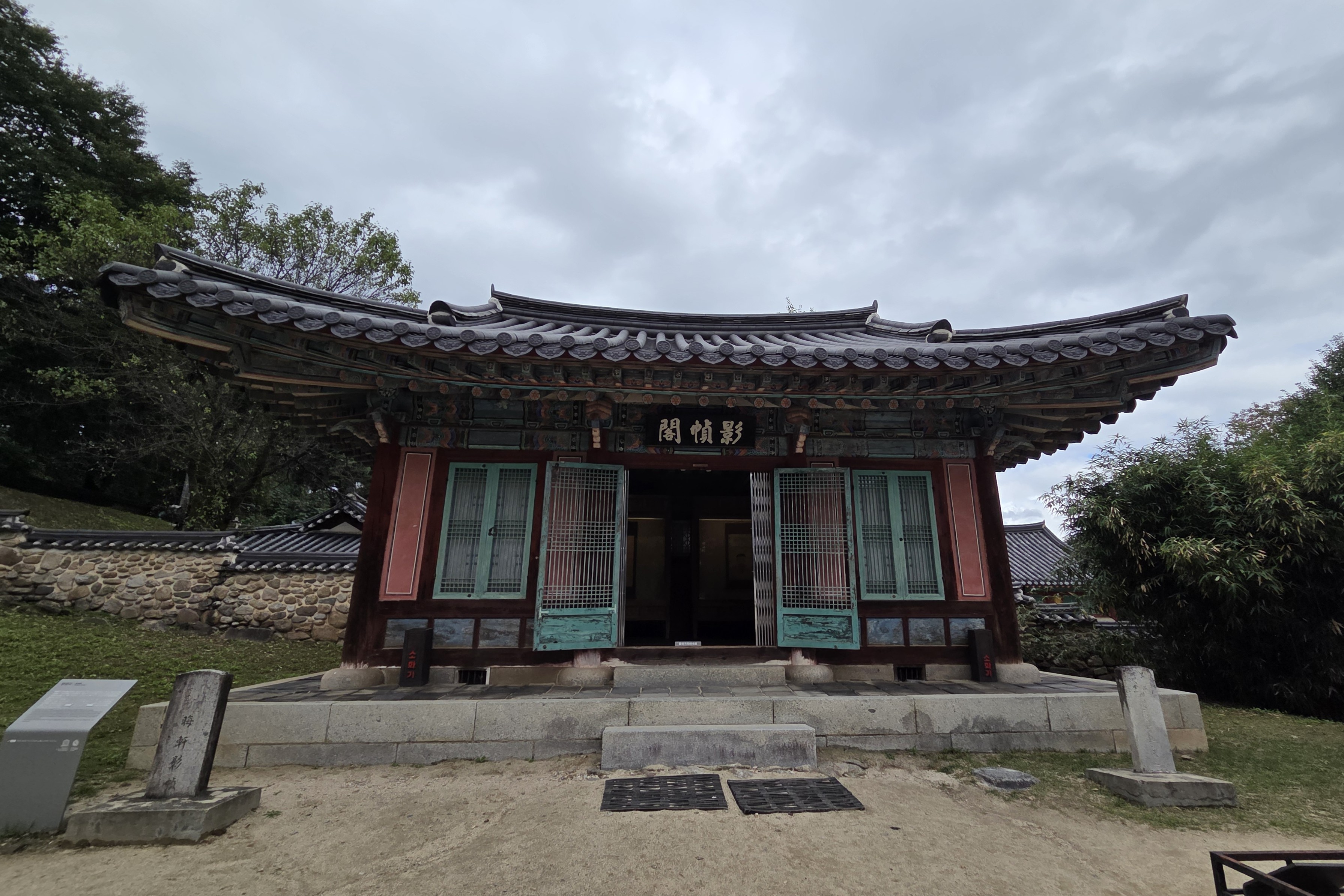 영정각은 소수서원에서 보관하는 영정을 모시기 위해 1975년에 지은 건물로 앞면 3칸, 옆면 2킨 크기의 기와집입니다. 조선 시대에는 도동각(道東閣) 또는 영정실(영정실)이라고 하였으며 안향의 영정을 모셨다고 합니다.