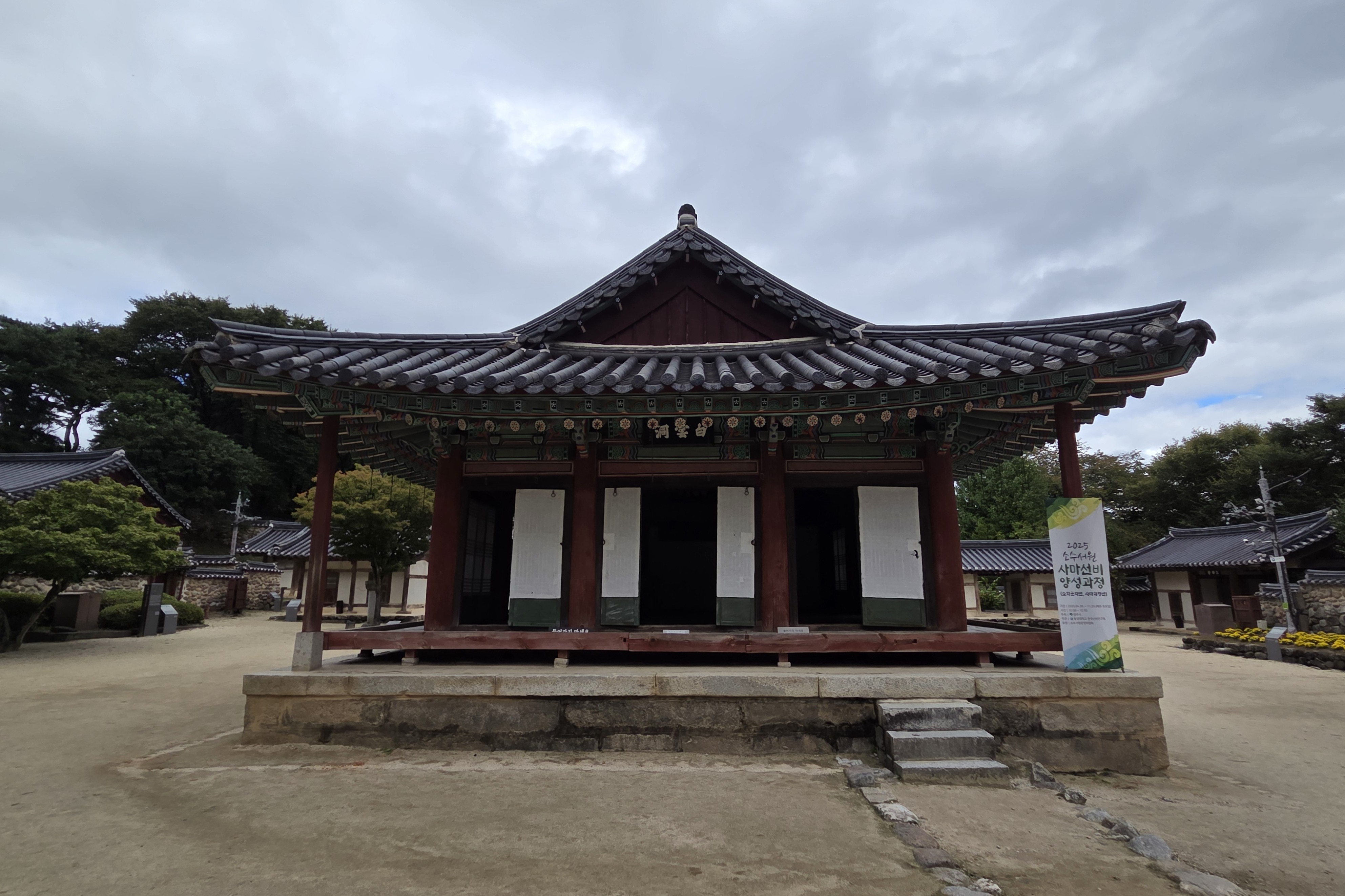 일반적으로 전당후묘(前堂後廟)라 하여 강학공간 뒤아 제향공간을 두는데 서쪽 방향을 중시하는 우리 전통사상에 따라 강학공간 측면 서쪽에 제향공간을 배치한 독특한 사례입니다.
