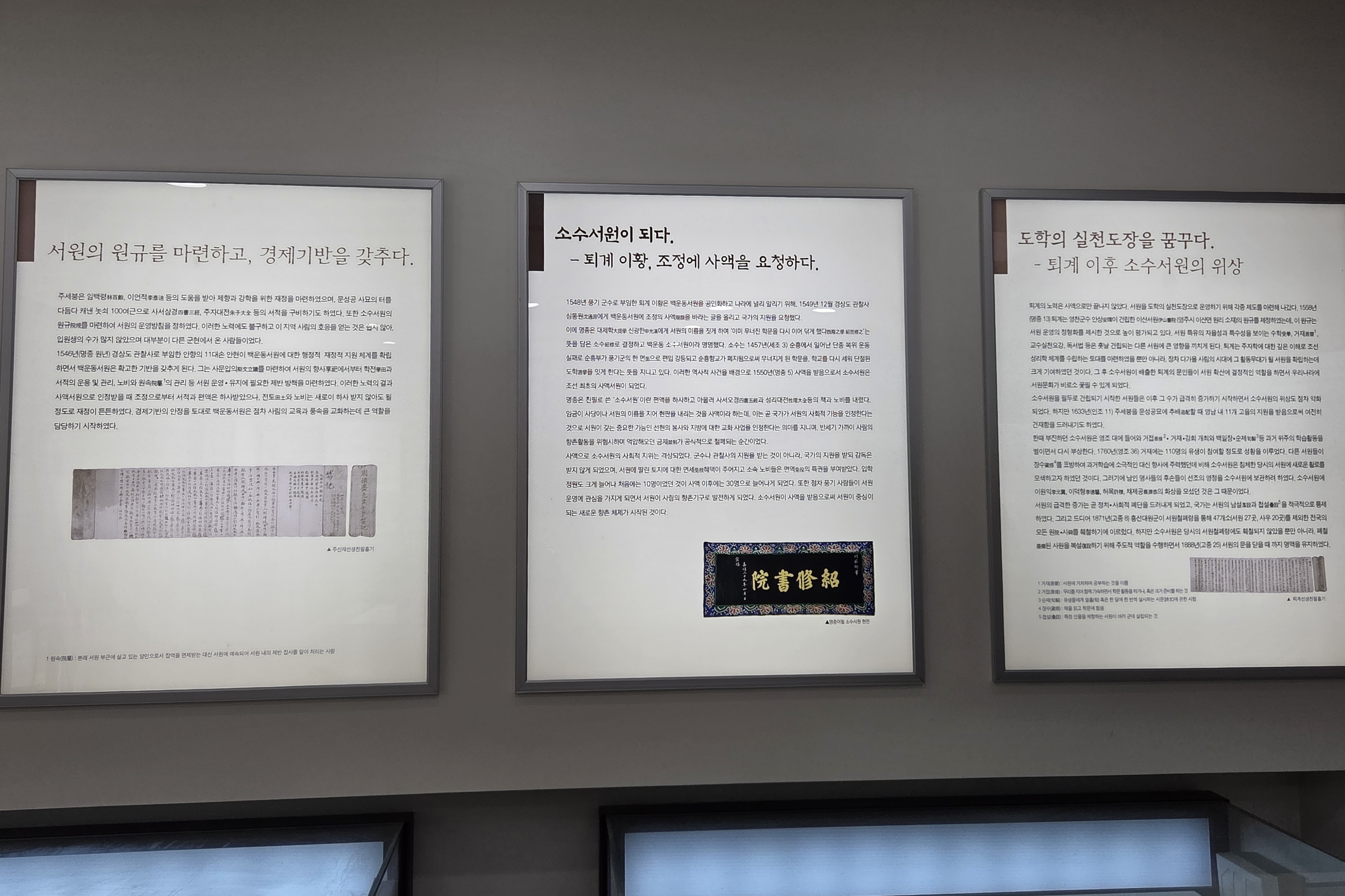명종은 친필로 쓴 '소수서원'이란 편액을 하사하시고 아울러 사서오경과 성리대전 등의 책과 노비를 내렸다,