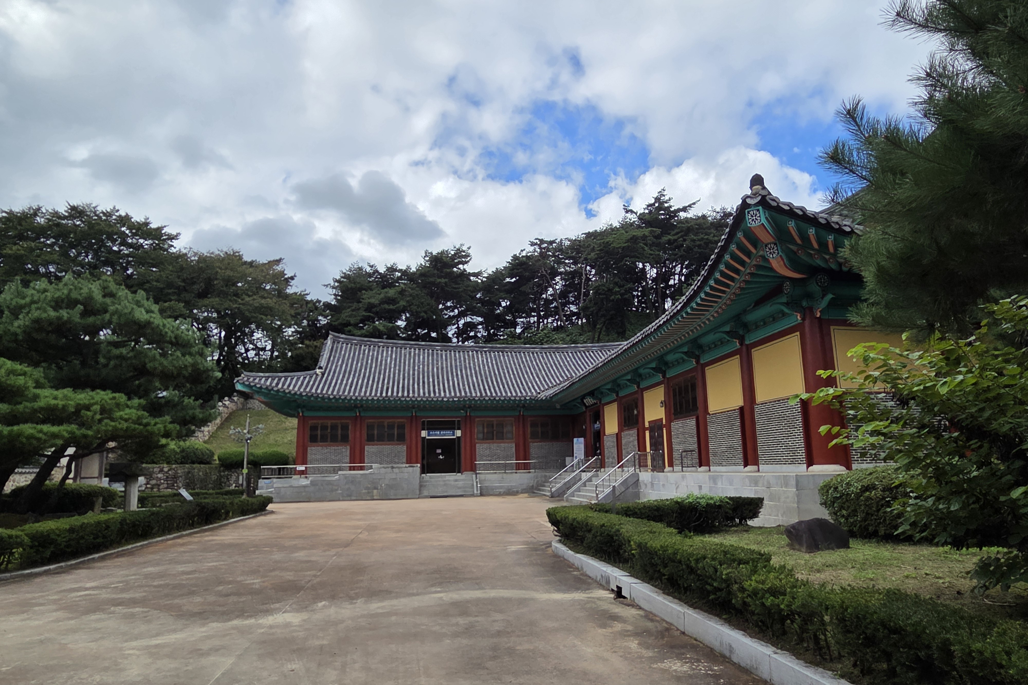 사진상으로 보면 좌측앞(입구만 쬐끔보임) 뒷편에 전사정 (망료대 뒷편의 조그만 건물은 장서각), 그 뒷편(장서각 뒷편) 살짝 보이는 건물이 영정각입니다.